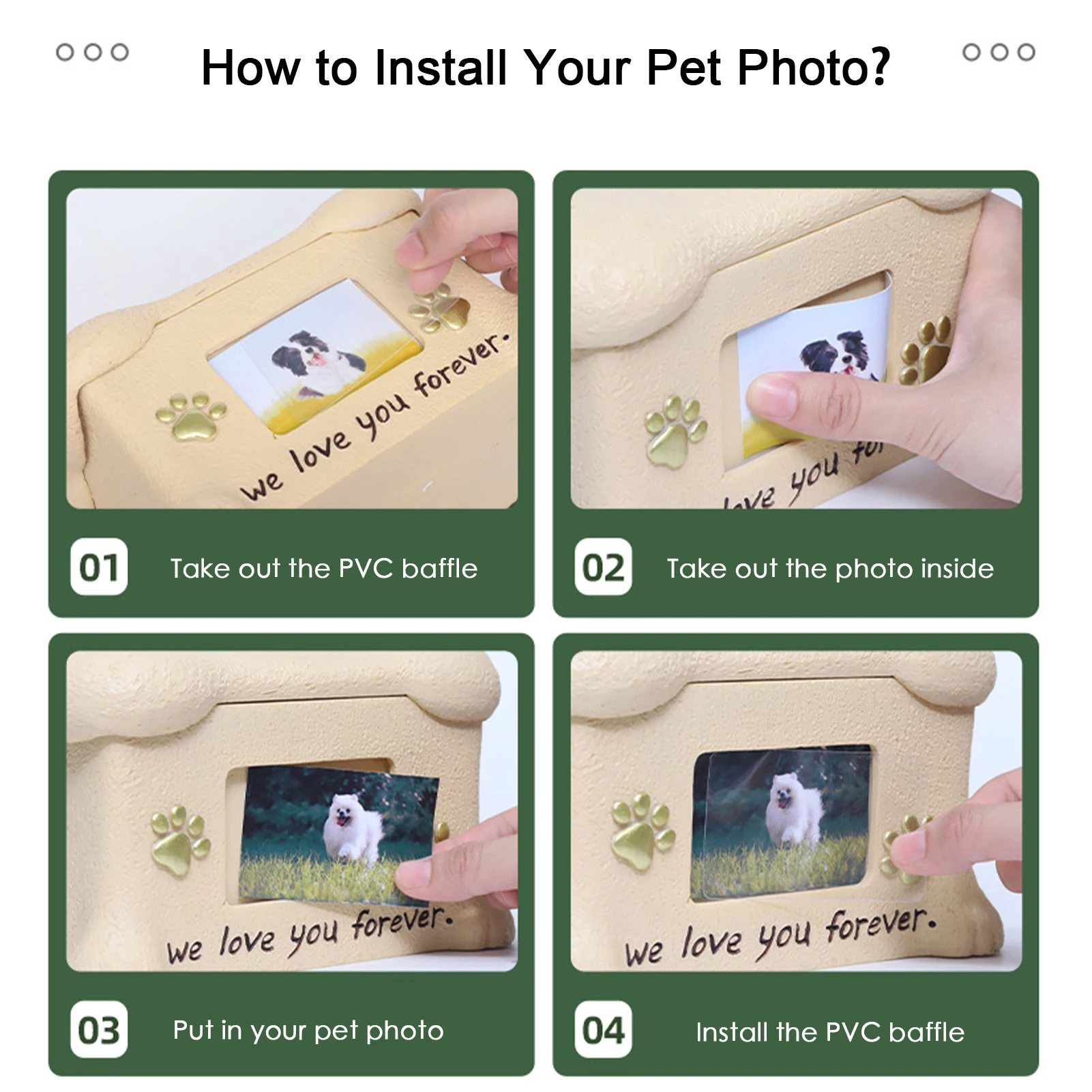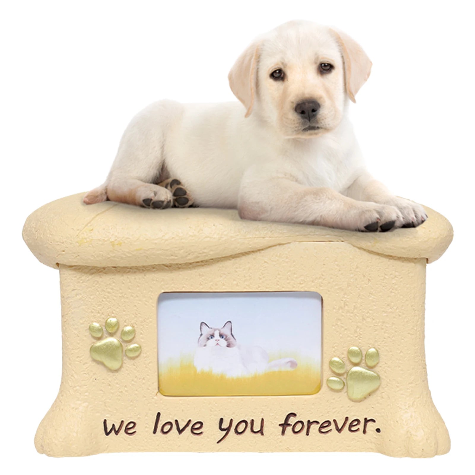 Resin Pet Urns Dogs Cats Cremation Urn Peaceful Memorial with Photo Frame Cremation Urns for Animal Ashes Funeral Pet Ashes Box