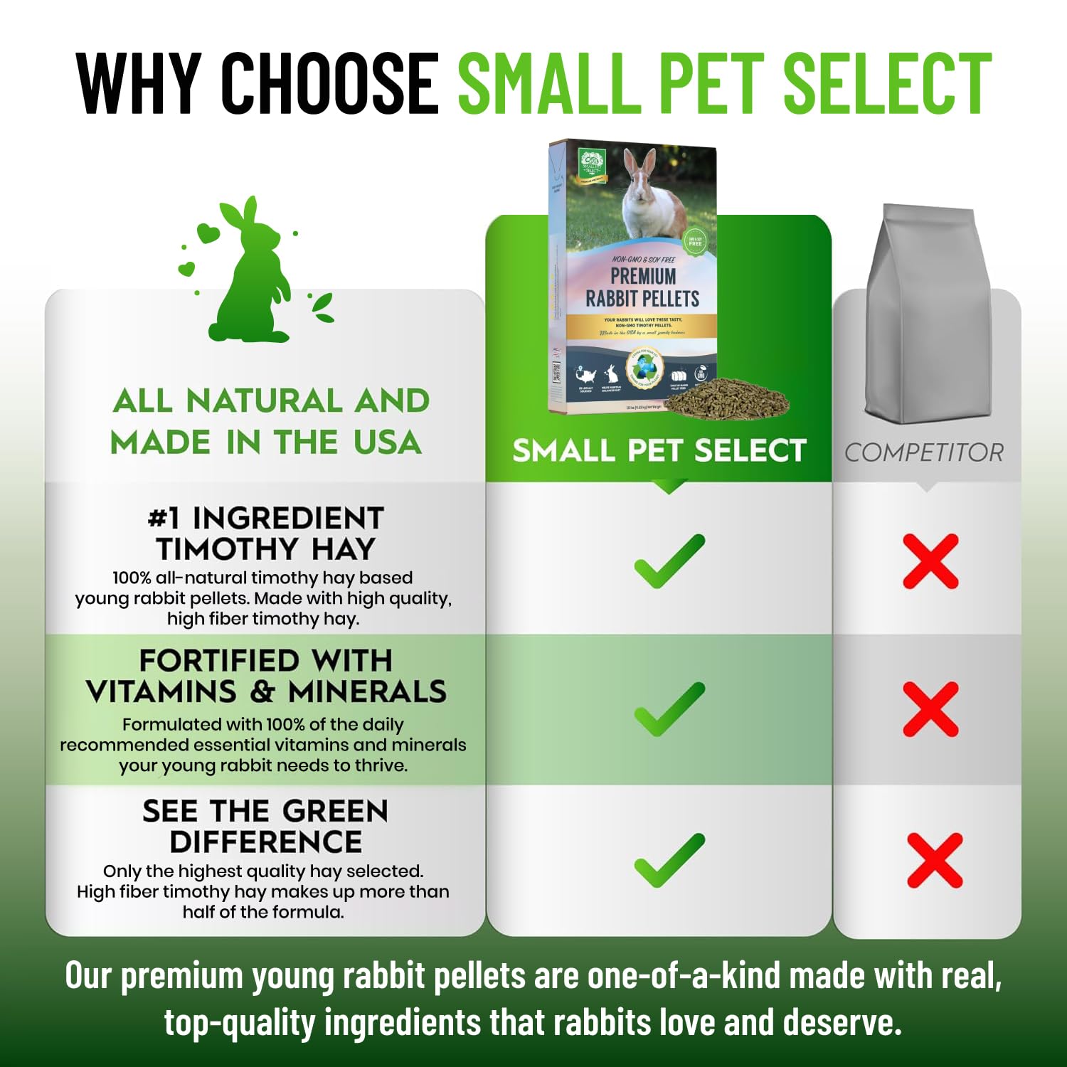 - All Natural- A completely non-GMO, and soy free rabbit pellet, means your pet is getting only the healthiest most premium ingredients.