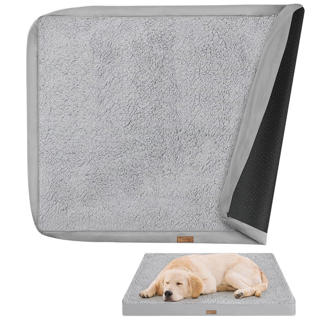 Tivray Dog Bed Cover, Washable Replacement Large Dog Bed Sheet with 3-Sided Continuous Zipper, Waterproof Liner, Soft Plush, Pet Mattress Fluffy Protector, 41x27x3 inches - M, Cover Only Grey