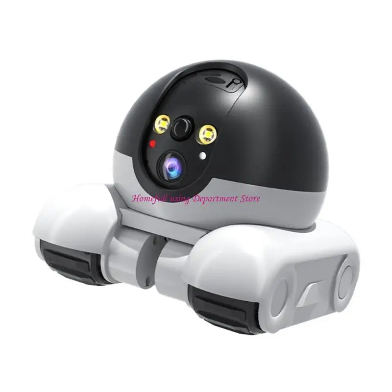 The Robot Camera On Wheel features a 2MP double lens design with 1080P resolution, enabling monitoring and real time interaction via two way talk for pet owners.
