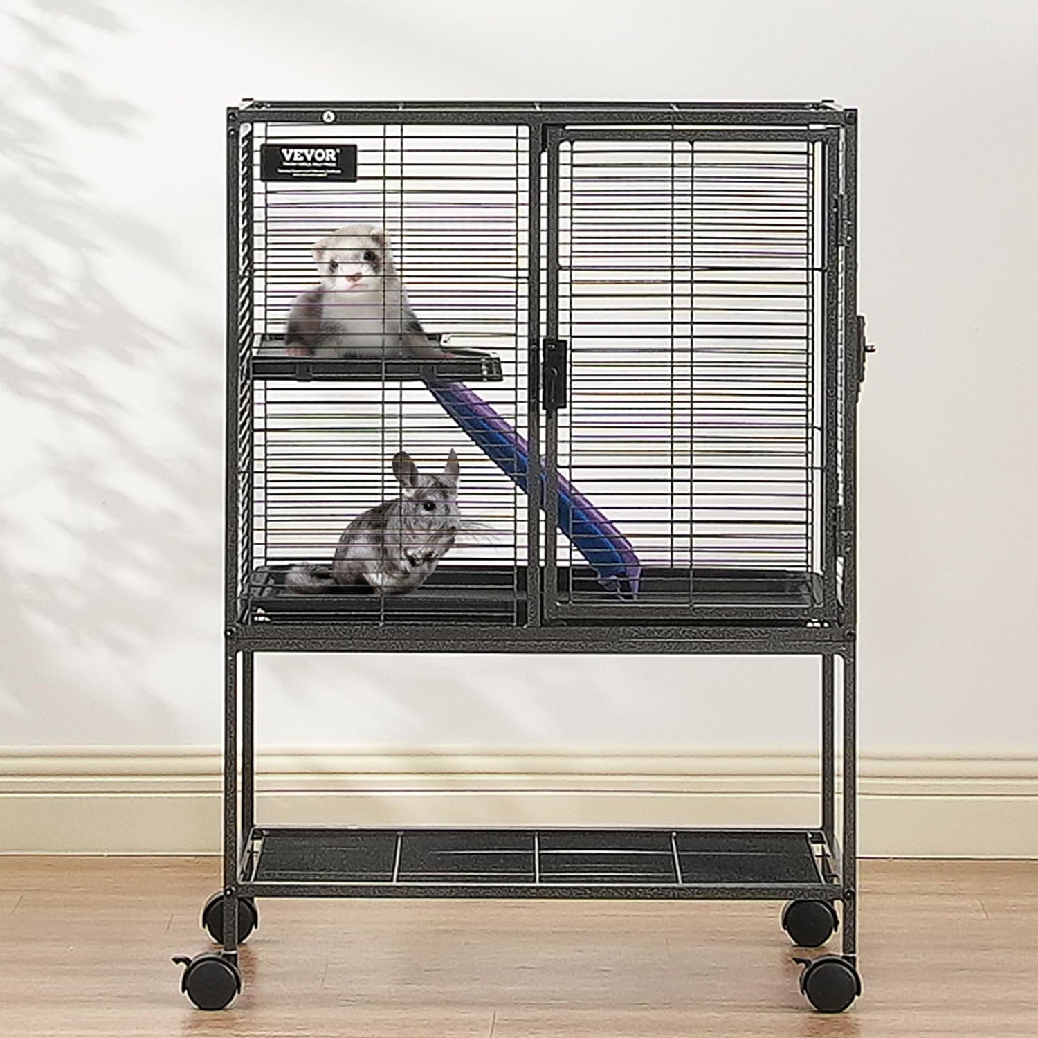 VEVOR 34" Rolling Metal Ferret Cage, Large 2-Tier Critter Nation Cage, Small Animal Cage with Ramps & Tray, Easy to Set up for Pet Mice, Hamster, Guinea Pig, Chinchilla, Squirrel, Hedgehogs, Bunny