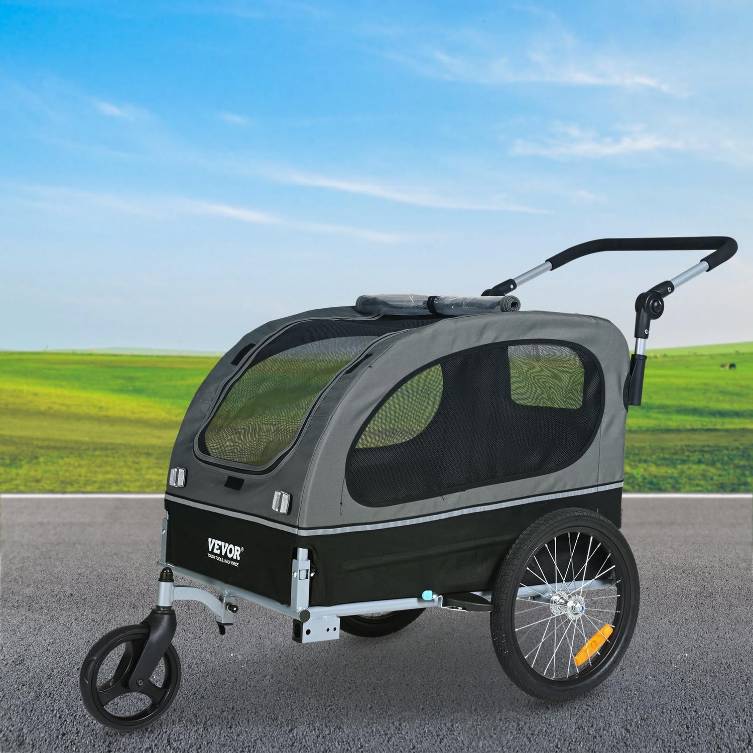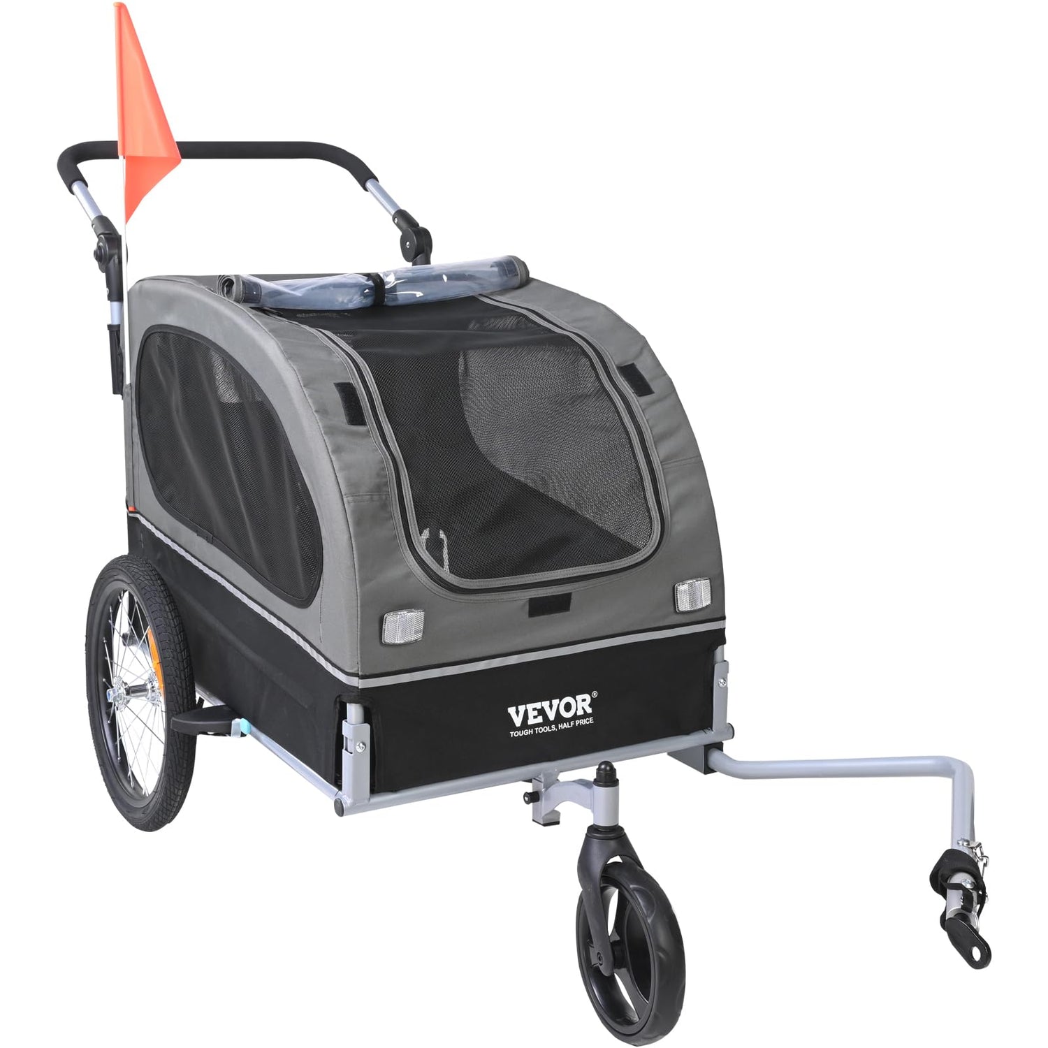 VEVOR Dog Bike Trailer, Supports up to 88 lbs, 2-in-1 Pet Stroller Cart Bicycle Carrier, Easy Folding Cart Frame with Quick Release Wheels, Universal Bicycle Coupler, Reflectors, Flag, Black/Gray