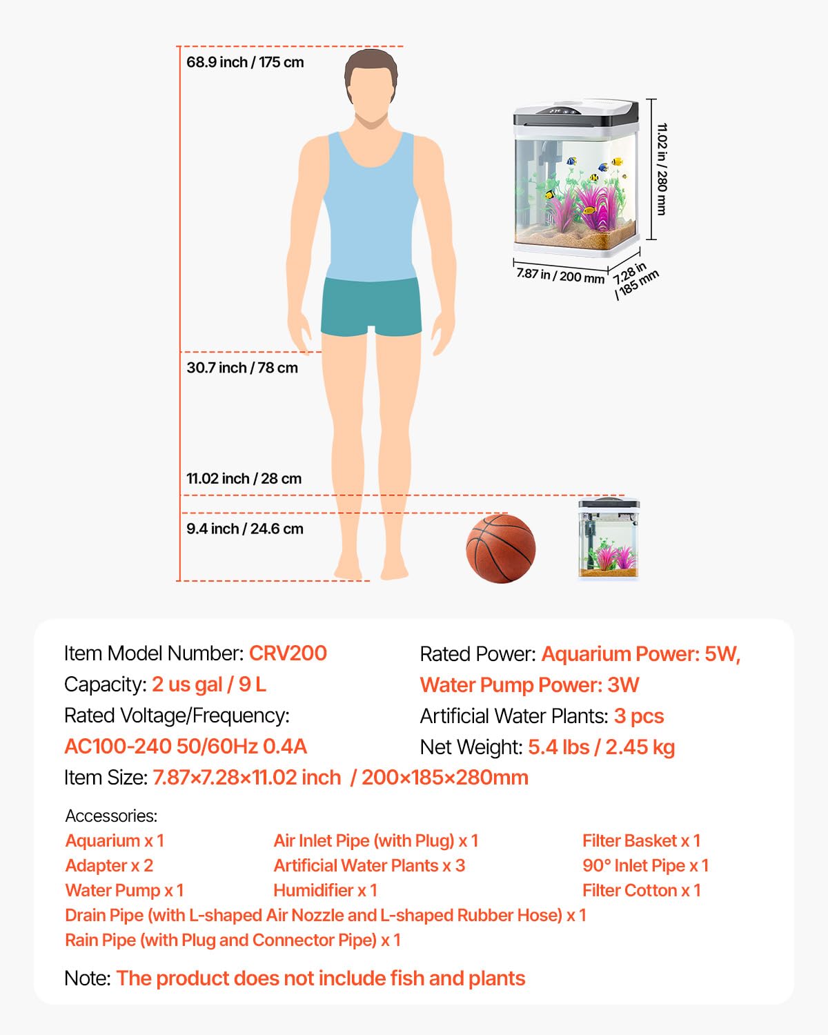 - Real-Time Water Temperature: Equipped with a temperature probe, this fish aquarium monitors water temperature in real time, keeping you informed of your fishβs condition. The stylish LED display and touch controls add a modern, smart touch to your tank