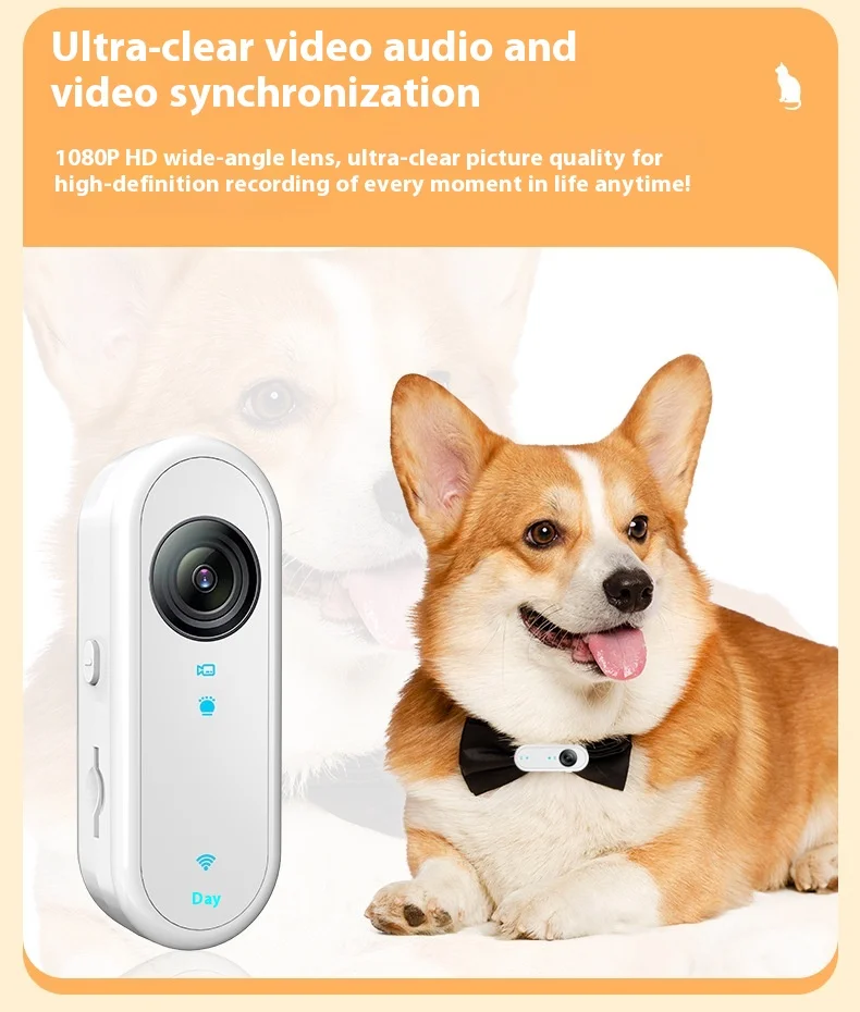 HD 1080P Pet Camera – Waterproof Wearable Pet Recorder with WiFi, Anti-Shake, 400mAh Battery, Magnetic Mount for Dogs & Cats