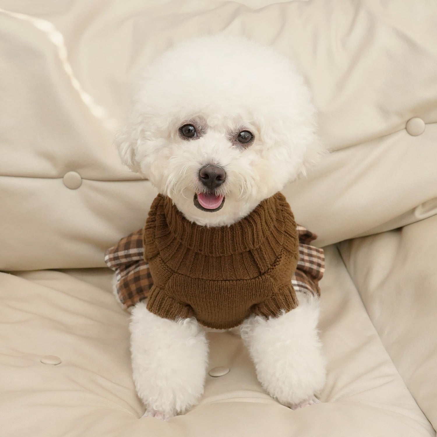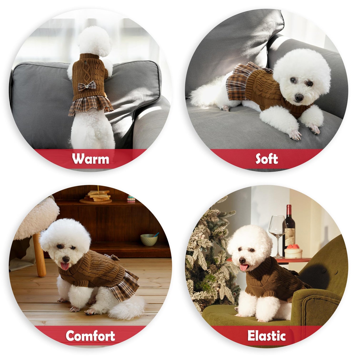- Pleated Skirt Design: WOYYHO dog sweater with a plaid pleated skirt is basic but fashionable. Be ready for any occasion, daily activities, or taking photos at any time. A diamond-encrusted bow makes your furry friend look cuter